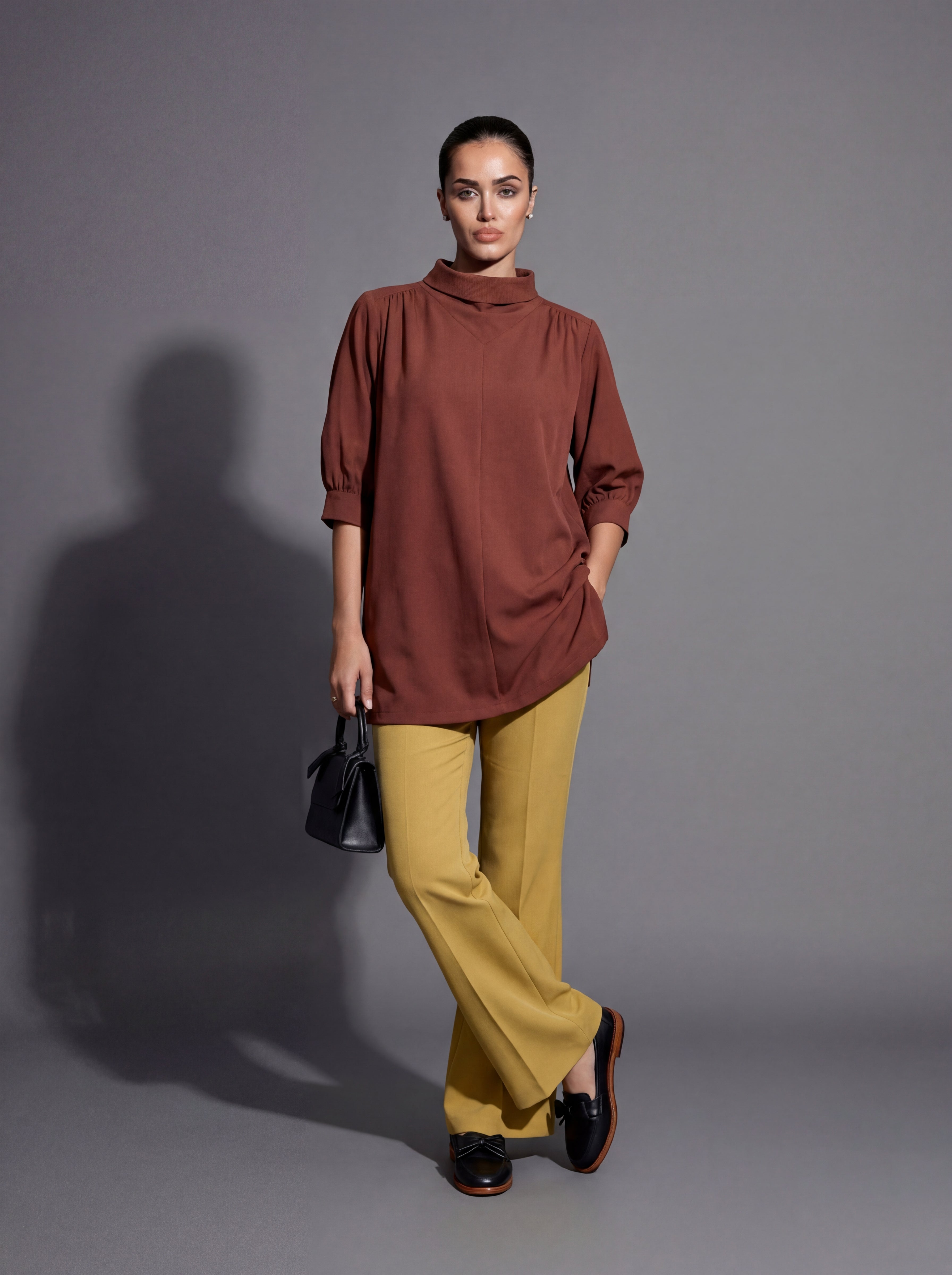 * A high-neck or cowl-neck top/tunic worn underneath the cape.