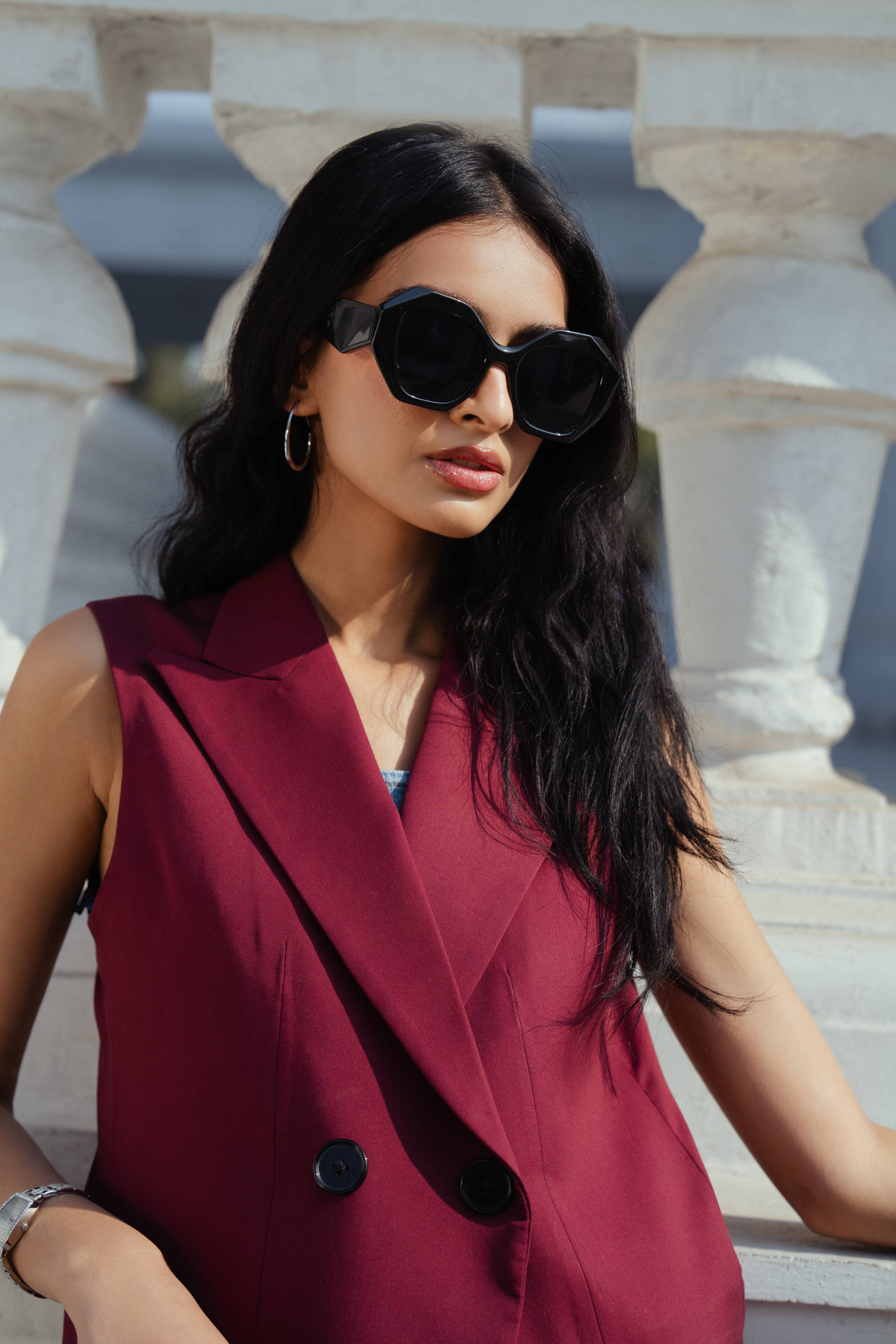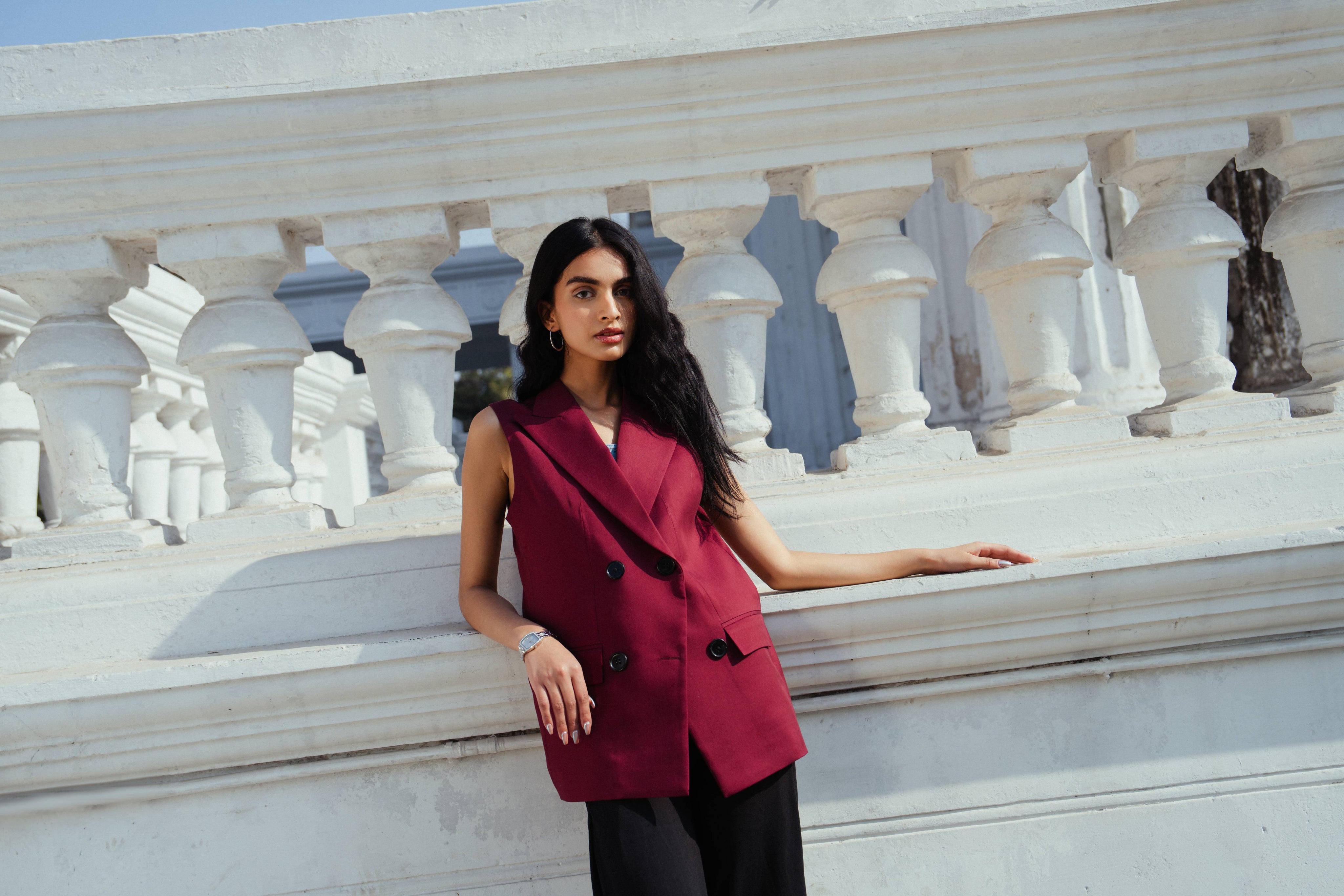 Double-breasted button fastening on the front.