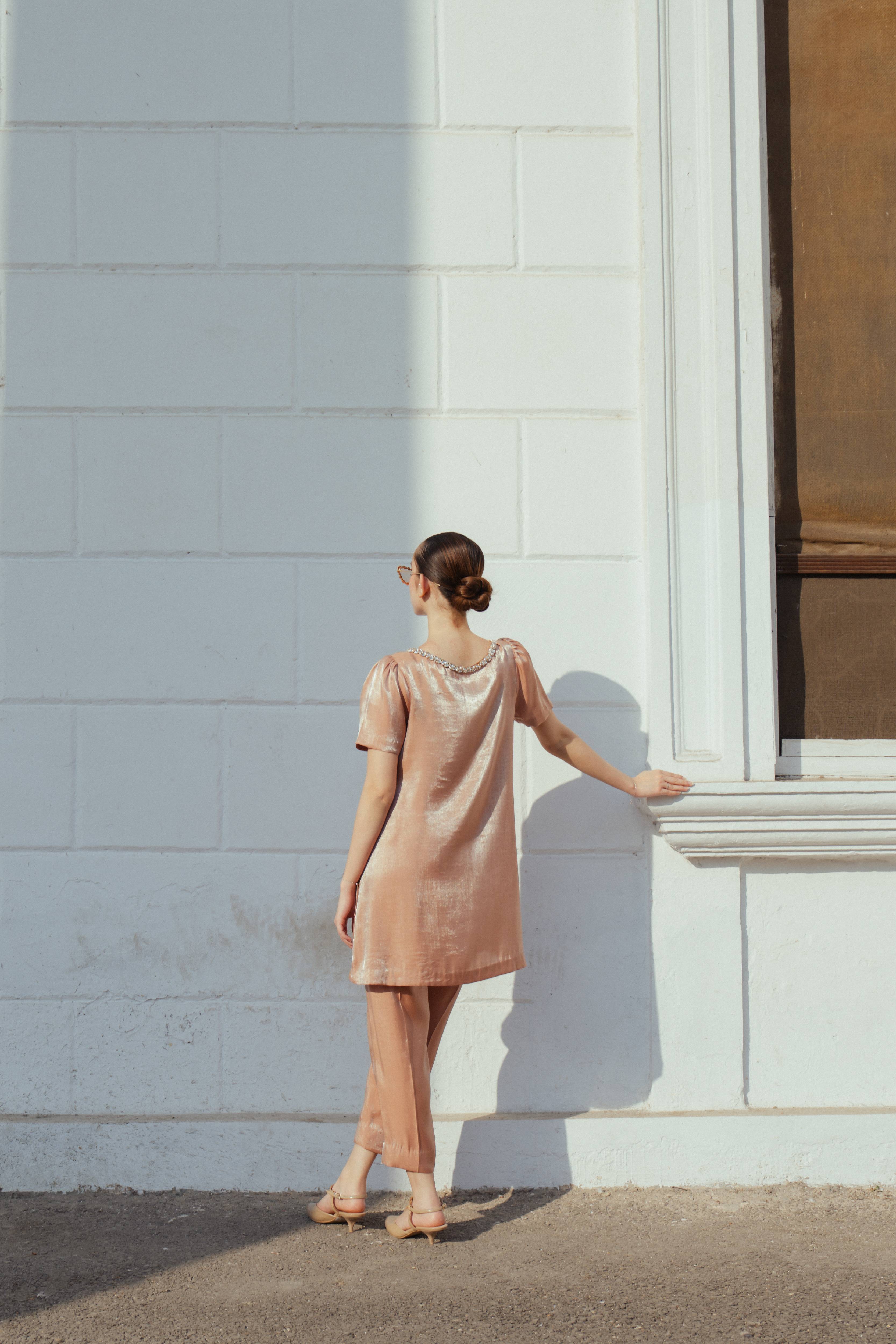 Paired with matching straight pants