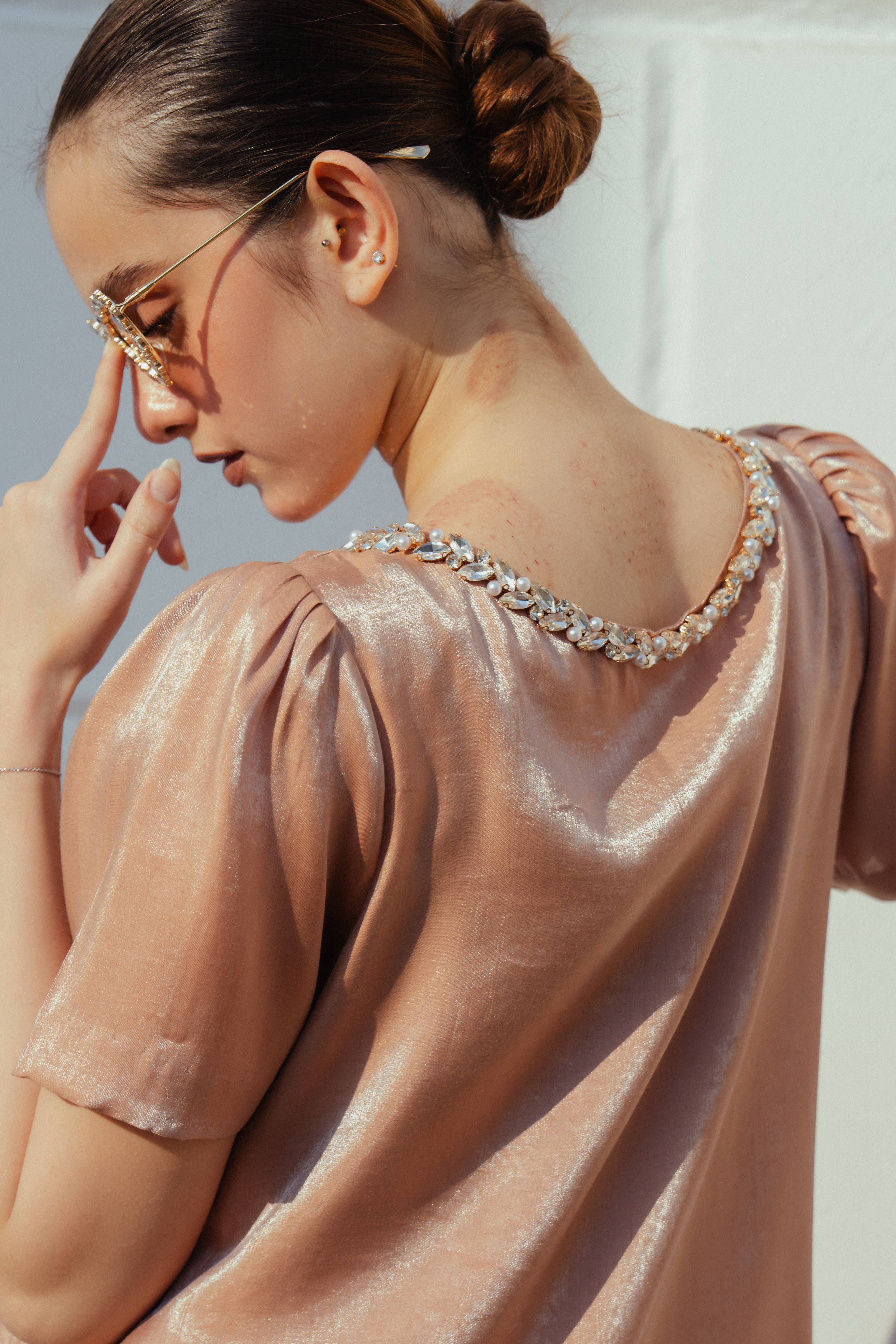 Tulle inserted sleeve head that falls above the elbow