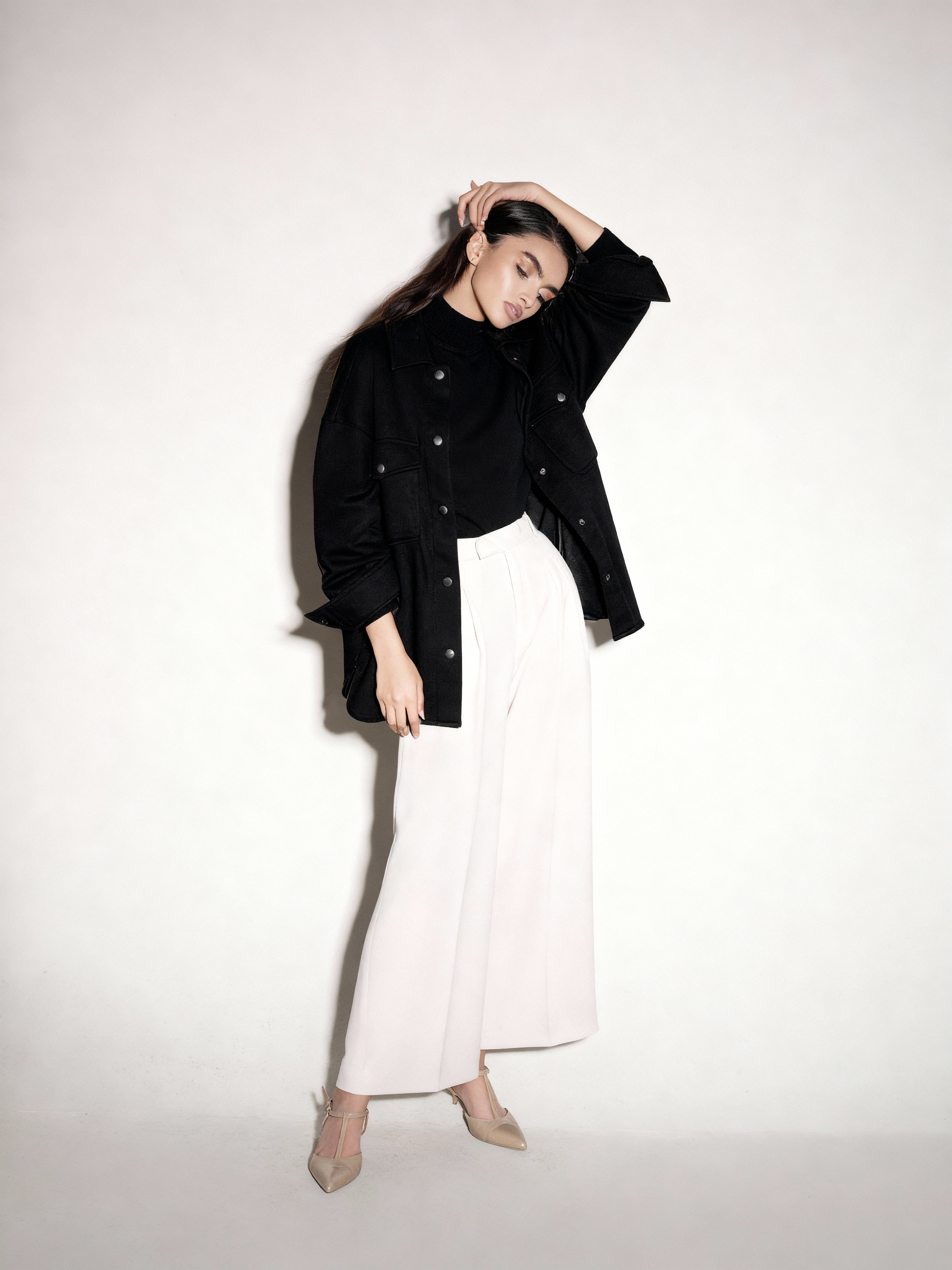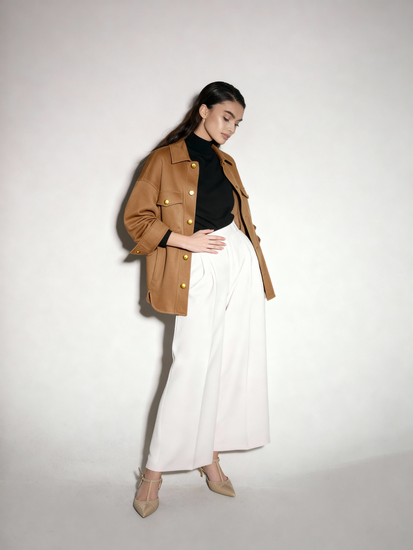 Oversized collared jacket with long sleeves