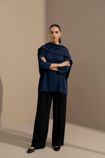 - Satin loose fitted blouse with sleeves falling below the elbow.