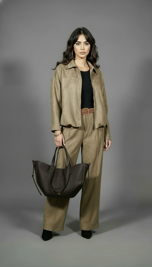 Available in deep seasonal tones such as Dark Brown and Khaki Green.