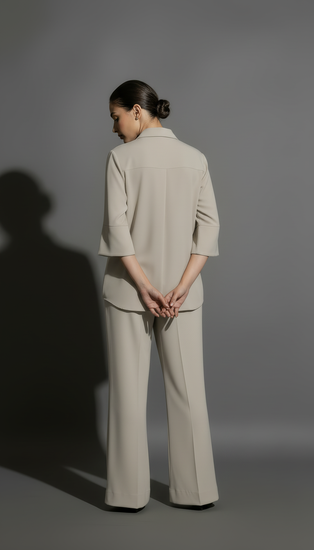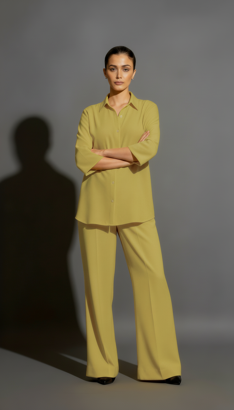 A perfectly matched set featuring a relaxed-fit shirt and wide-leg trousers.