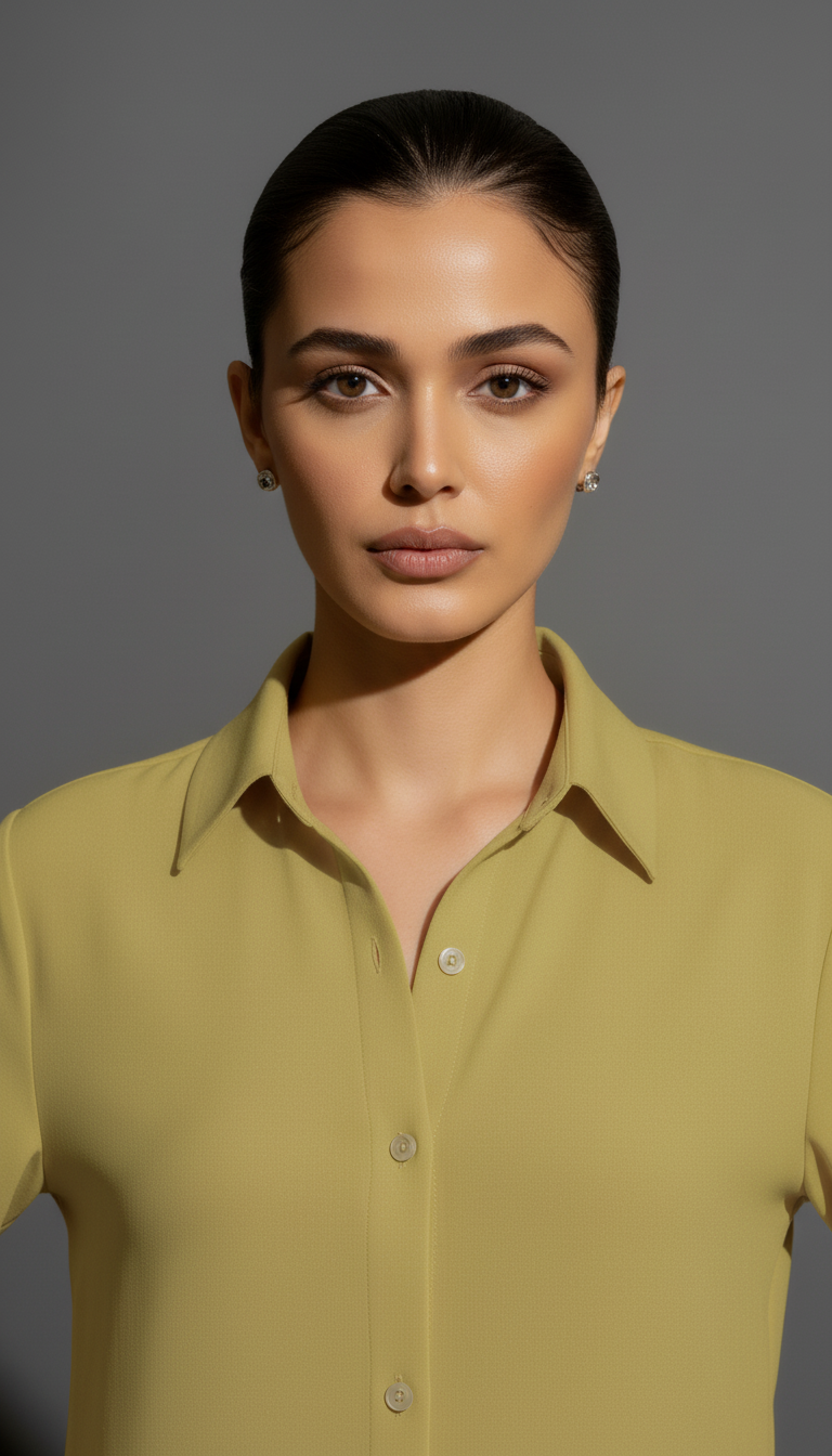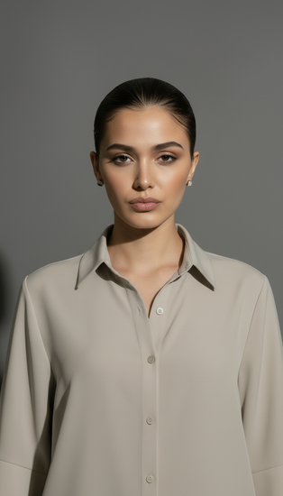 Features a classic pointed collar, full-button placket, and a comfortable, effortless drape.