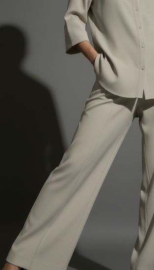 High-waisted, full-length cut with an elongating wide-leg, combining comfort and polish.